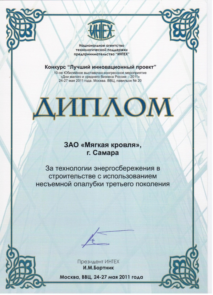 В этот же день состоялось вручение национальной премии Торгово-промышленной палаты РФ в области предпринимательской деятельности «Золотой Меркурий 2011». ЗАО «Мягкая кровля» победило в номинации «Лучшее предприятие-экспортер в сфере промышленного производства».