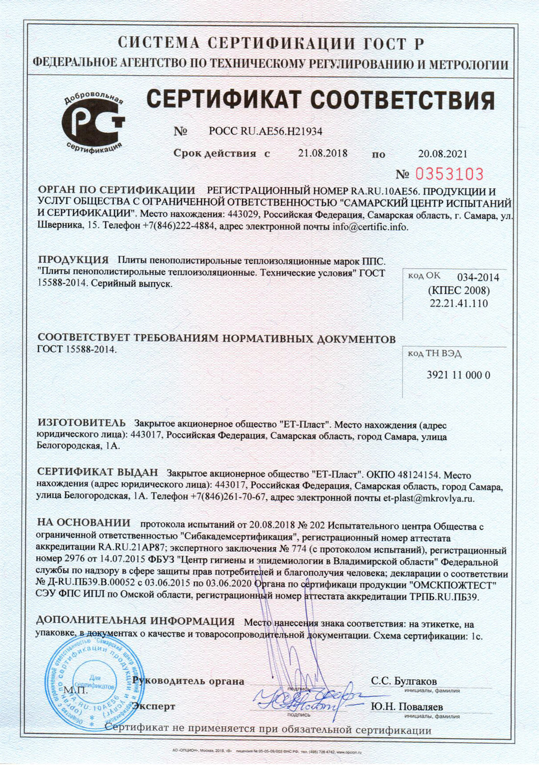 Сертификат ЕТ-Пласт